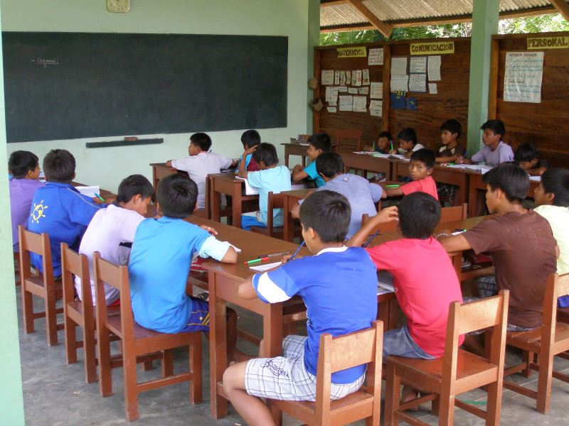 El 99 % de los alumnos son aguarunas (comunidad indígena), de las zonas cercanas a Chiriaco, algunos caminan por la selva dos días antes de llegar al colegio. De ahí la necesidad de internado. Hablan dialecto, algunas chicas tienen dificultades para hablar español, por eso reducen el nº de horas en inglés - hasta este año no había- para potenciar el español y la educación es bilingüe. Las clases comienzan a las 8 y terminan a las 5. Descansan para comer de 12 a 14,30. Por la tarde suelen tener deporte y baño, así como limpieza de habitaciones, lavan su ropa, se cultiva y se limpia la "chacra" (tareas de jardinería en la selva que limita el colegio con el poblado indígena y de huerta donde plantan papas, etc.), y otros talleres: corte y confección, cocina, cuidado y cría de animales (gallinas y kuyes), etc.
