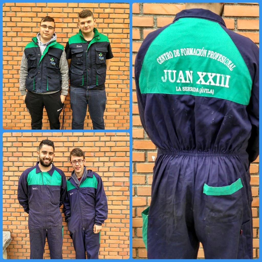 Los alumnos del Centro de F.P. "Juan XXIII", para su posterior adaptación al mundo laboral deben asistir a las clases prácticas uniformados con la ropa laboral que se ha destinado para tal fin.